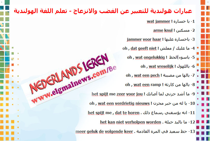 محادثة بين شخصين بالهولندي في المطار تعد هذه المحادثة من المحادثات الهامة جدا والتي نراها كثيرا جدا ويبحث عنها الكثير من الباحثين والدارسين. درس مهم ايضا : جمل وكلمات تستخدم فى القطار في اللغة الهولندية حيث سوف نضيف دروس جديدة بشكل يومي مدعومة بالصوت وايضا مترجمة وكذلك الامثلة لبعض الدروس. هذه الدروس هي لجميع المستويات من […]