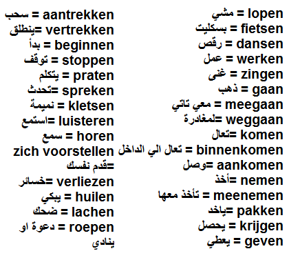 الجزء الثاني : جمل جديدة تستخدم في حياتنا اليومية في اللغة الهولندية ●كلمات هولندية متداولة يوميا● Lopen=المشي fietsen = قيادة الدراجة dansen = رقص werken = عمل zingen = غناء gaan = ذهب meegaan = ذهاب من weggaan = ترك komen = اتى binnenkomen = اتى داخلا aankomen = وصل nemen = اخذ meenemen […]