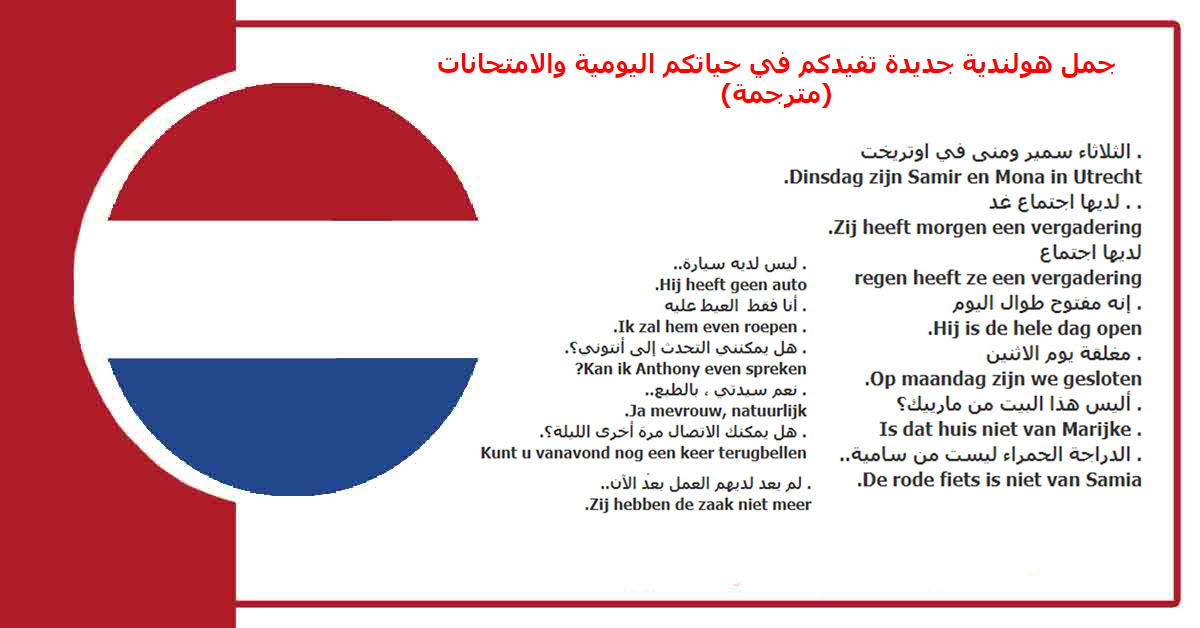 جمل هولندية جديدة تفيدكم في حياتكم اليومية والامتحانات (مترجمة)