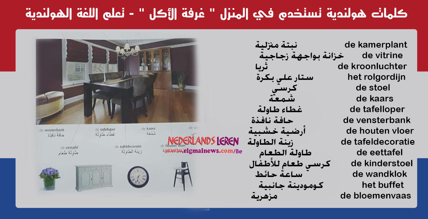 القسم الخامس : كلمات هولندية تستخدم في المنزل ” غرفة الأكل ” – تعلم اللغة الهولندية