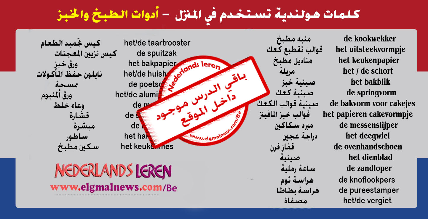 القسم السادس : كلمات هولندية تستخدم في المنزل ” أدوات الطبخ والخبز ” – تعلم اللغة الهولندية