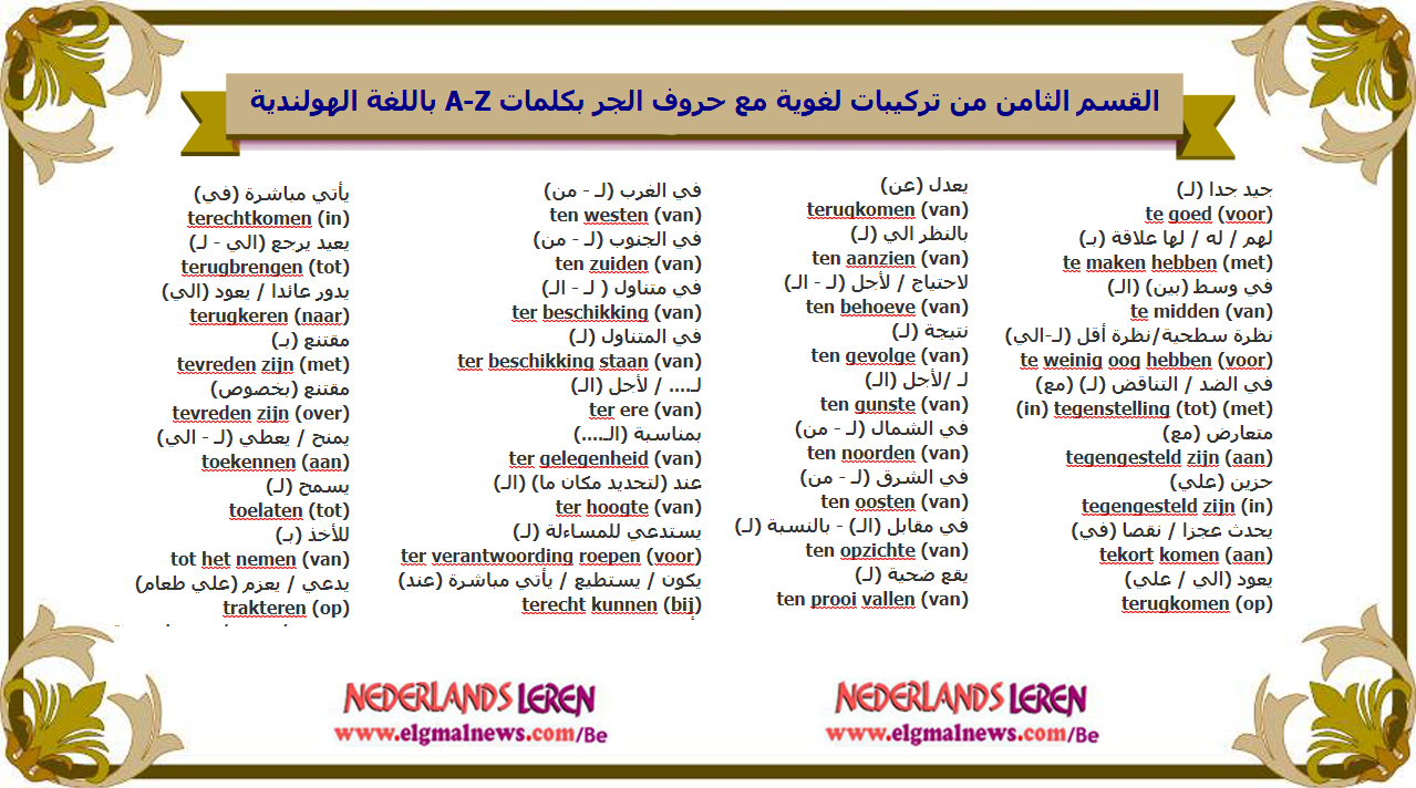 - لمشاهدة القسم الثامن :: تركيبات لغوية مع حروف الجر بكلمات A-Z باللغة الهولندية